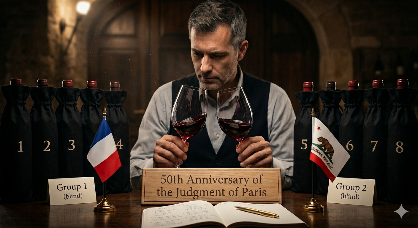 Get ticketsThis May marks the 50th anniversary of the (in?)famous Judgment of Paris. What better way to celebrate than to re-enact it in a blind tasting of French and California wines?